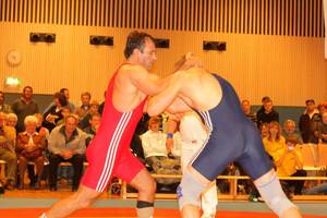 Deutlich knapper endete dann der Kampf der beiden Verbandsligamannschaften, doch auch hier konnte sich der Gastgeber schlussendlich durchsetzen. Im Fliegengewicht startete unser Ringertrainer wieder routiniert mit einem Sieg durch Technische Überlegenheit gegen Nachwuchsringer Steffen Wagner (TÜS 4:0). Im Schwergewicht dagegen tat sich Andreas Werft ungewohnt schwer gegen Michael Eisele und verlor folgerichtig nach einem zähen Kampf in der fünften Runde (PN 2:3; 6:3).