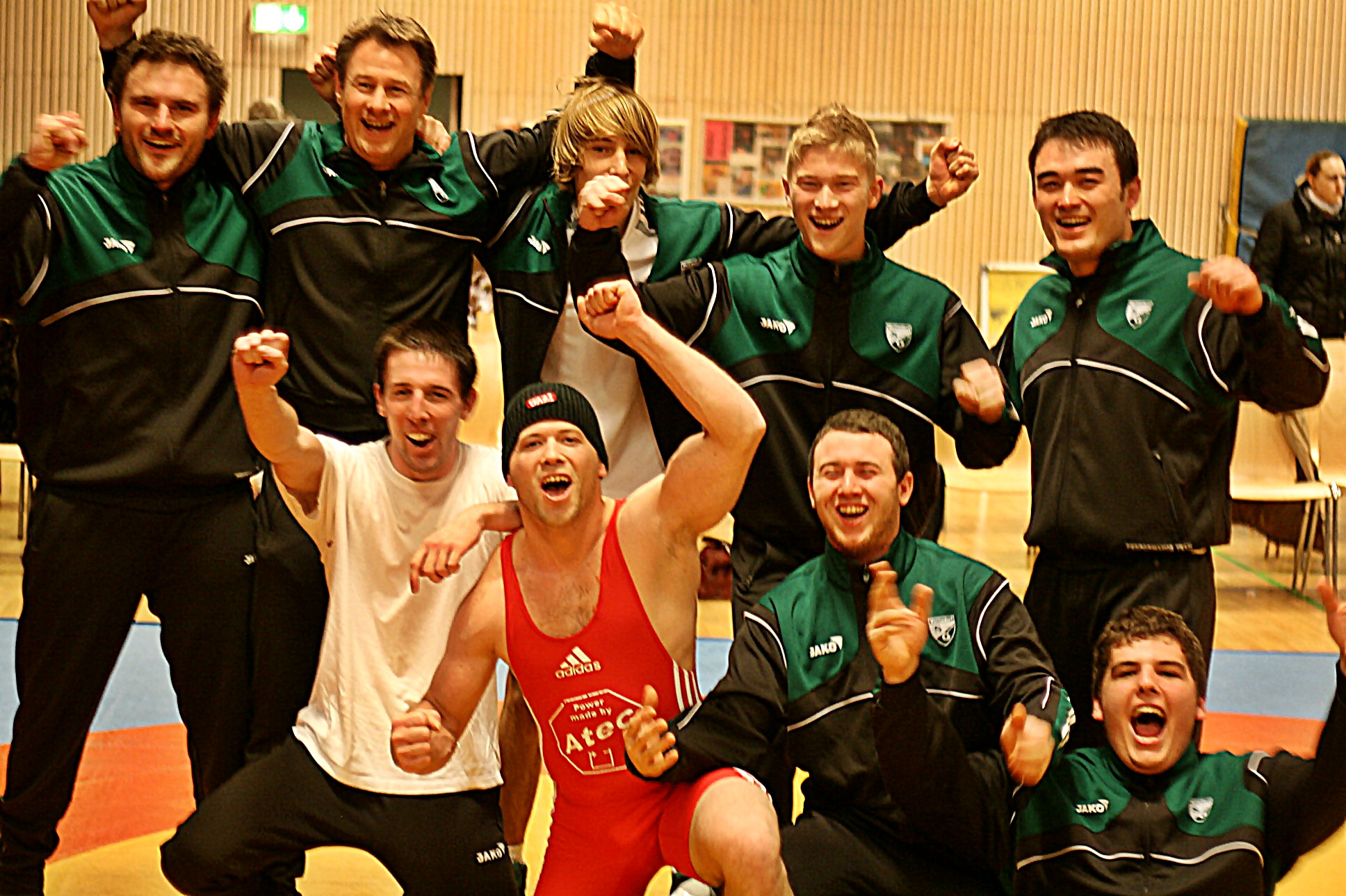 Dann kam der Auftritt von Michael Berner gegen Roman Biskupek, der ebenfalls schon in Weilimdorfer Diensten war. Michael hielt die ersten beiden Runden klasse dagegen und musste die Runden nur knapp abgeben. In der dritten Runde witterte er dann seine Chance: nach einem Durchdreher des Neckarweihingers konnte er kontern und seinen Gegner sensationell schultern (SS 4:0, 20:9). Die Halle bebte natürlich in diesem Moment, bedeutete dieser Sieg ja auch gleichzeitig den Mannschaftserfolg und damit die Tabellenführung in der Verbandsliga.