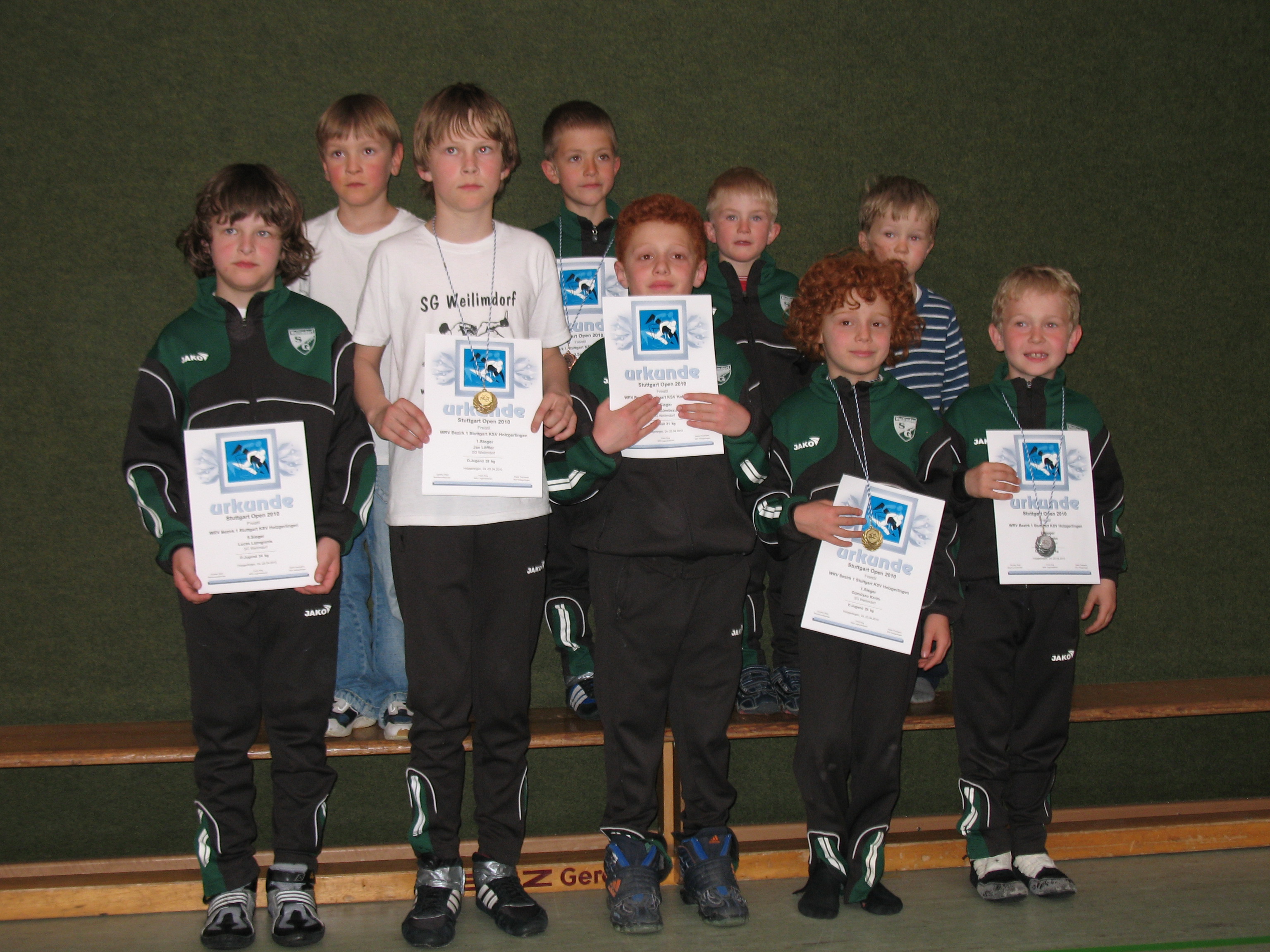 Am vergangenen Sonntag fanden in Holzgerlingen die Stuttgart Open im Ringen statt. Bei diesem nationalen Jugendturnier schnitten die Weilimdorfer Nachwuchsringer der SGW dabei außergewöhnlich gut ab. In der Vereinswertung der C-, D- und E-Jugend mit 130 Teilnehmern und 34 Vereinen wurde der vierte Platz belegt und damit waren die "kleinen Kraftprotzen" unter Leitung des Trainerteams Frank Schwörer und Hamdan Iflazoglu so erfolgreich wie selten zuvor. Und das obwohl mit Robin Schwörer, Jamie Holzner und Vadim Kozanov gleich drei Ringer krankheitsbedingt ausfielen.
